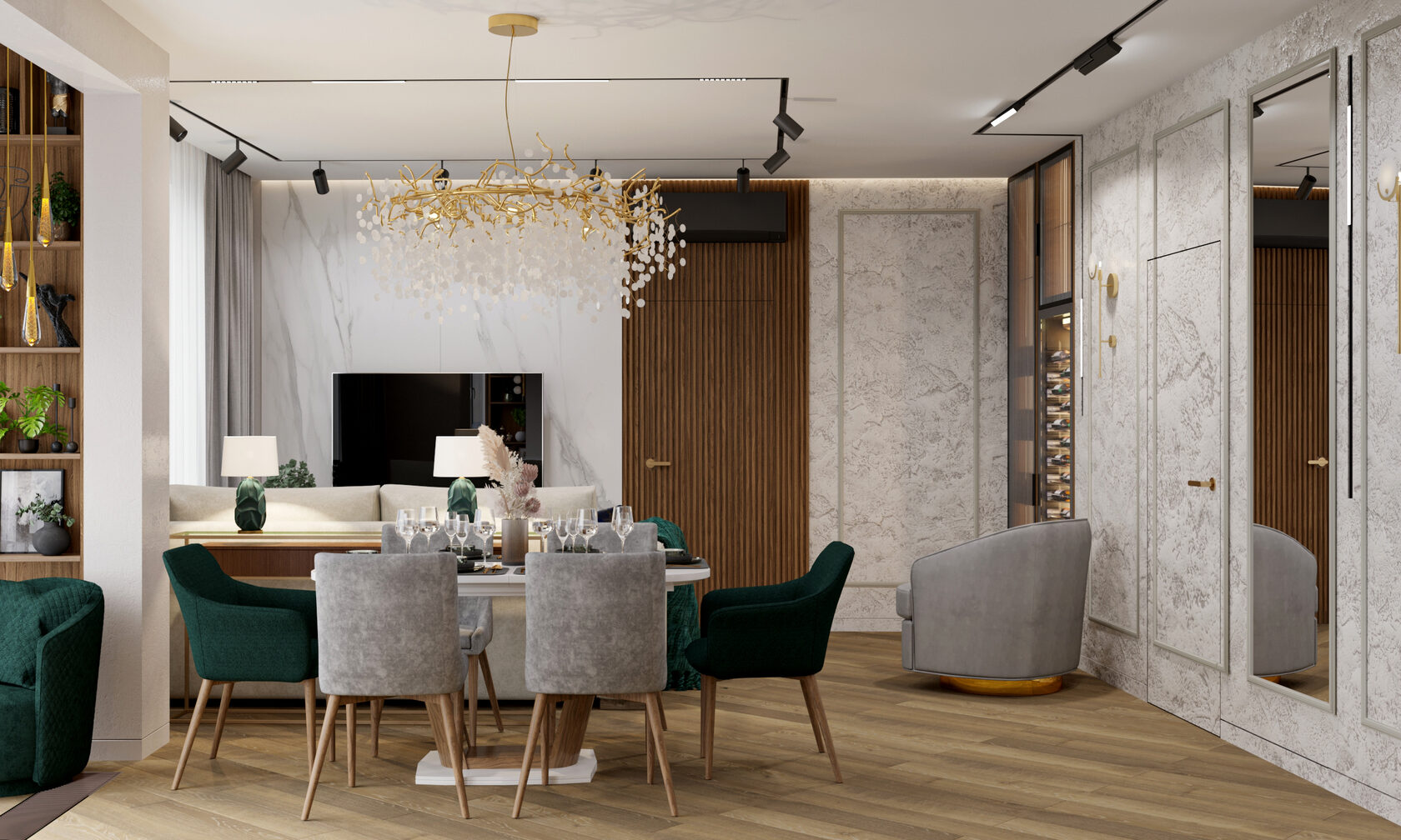 Стилевое решение также было непростым: в интерьере было собрано множество современных трендов. В итоге получился достаточно сложный и интересный проект.